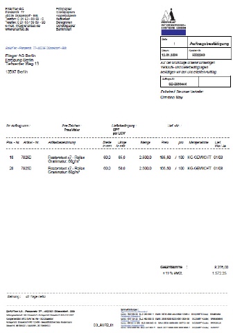 Auftragsbestätigung A4, Farbe, Formularname: AB_SD1