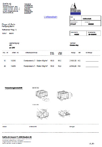 Lieferschein mit Firmenlogo und Bild der Verpackungsvorschrift , Formularname: LS_SD1