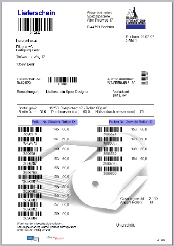 Lieferschein mit Firmenlogo und Hintergrundbild, weiteren Logos und 17 Barcodes die über if/else Bedingungen ausgegeben werden , Formularname: LS_SD2